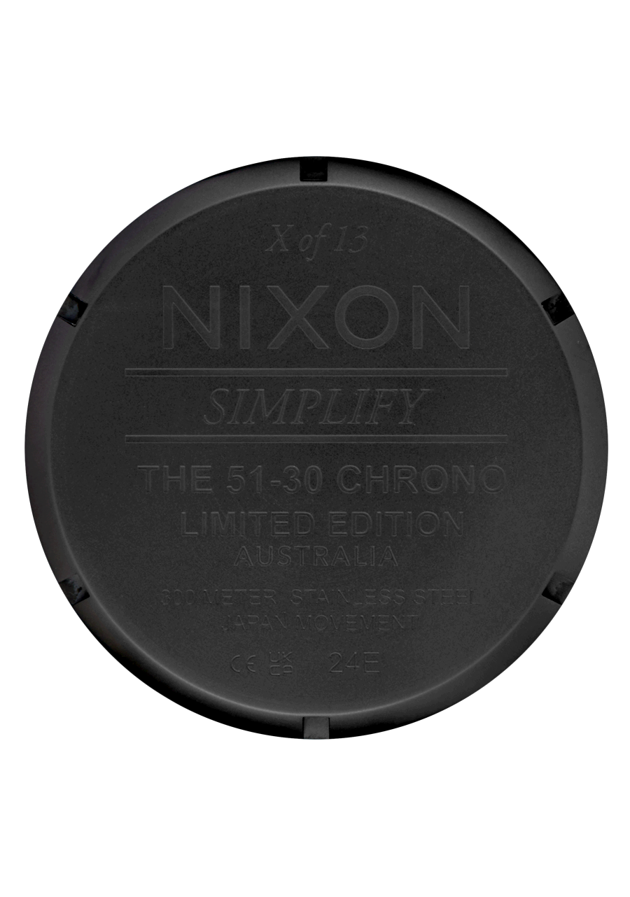 Questo 51-30 Chrono in edizione limitata è sia superstizioso che super collezionabile. Solo il numero 13 segna le ore su questo orologio maledetto. Tuttavia, questo orologio non porta solo sfortuna. Il suo cronografo di livello professionale e la resistenza all'acqua di 30 ATM / 300 metri ti danno il vantaggio quando ne hai più bisogno. Se vuoi fare una dichiarazione misteriosa, fanne una grande, audace e nera su nero. Solo 13 disponibili in ciascuna regione: USA, UE e AUS. Numerati singolarmente.
