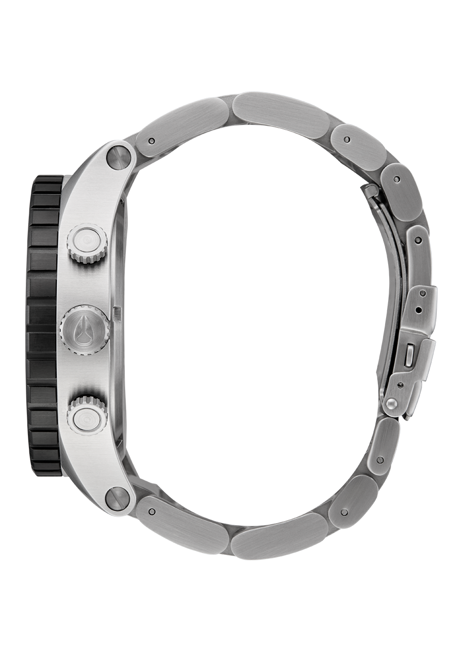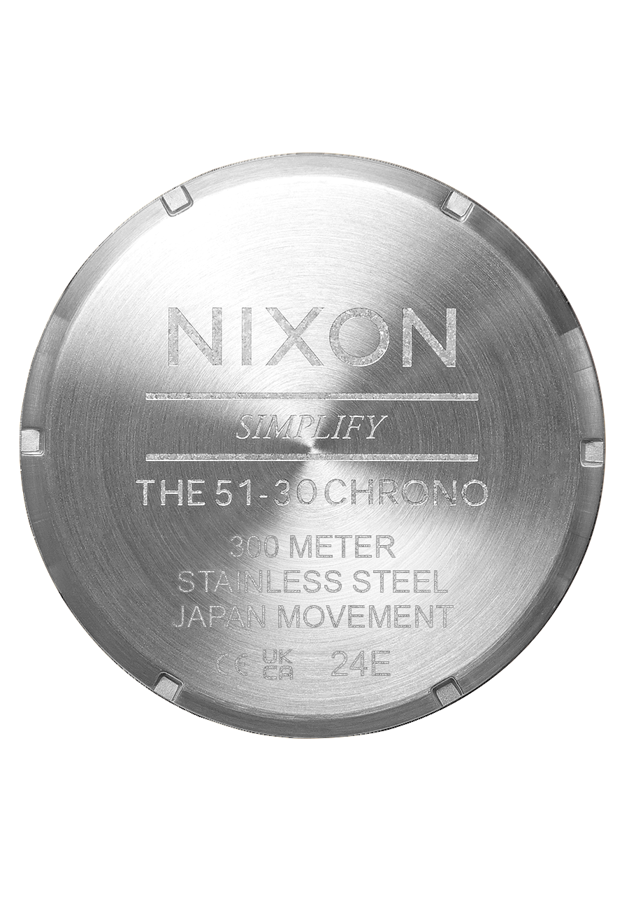 La corona del Nixon 51-30 Chrono si trova a ore 9 per evitare che si punti al polso quando indossato sulla mano sinistra, offrendo maggiore comfort durante l'uso attivo. Questa scelta di design permette di indossare l'orologio senza che la corona si infili nel polso, ottimo se si hanno le mani sporche.