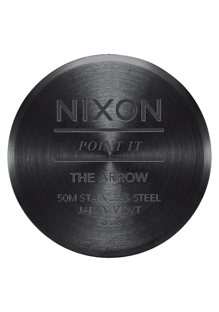 Il quadrante presenta il marchio Nixon e indici orari in formato arabo e a bastone. Include anche numeri stampati e lancette sagomate su misura.