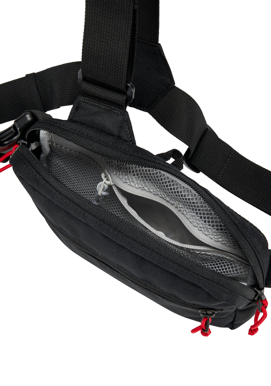 Il pannello posteriore traspirante in mesh facilita il passaggio dell’aria e riduce il sudore. Il design con cinghie frontali aggiunge stile alla funzionalità e alla sicurezza di Bandit. Tasche interne ed esterne con cerniera e organizer interni, come una clip per le chiavi e tasche a bustina.