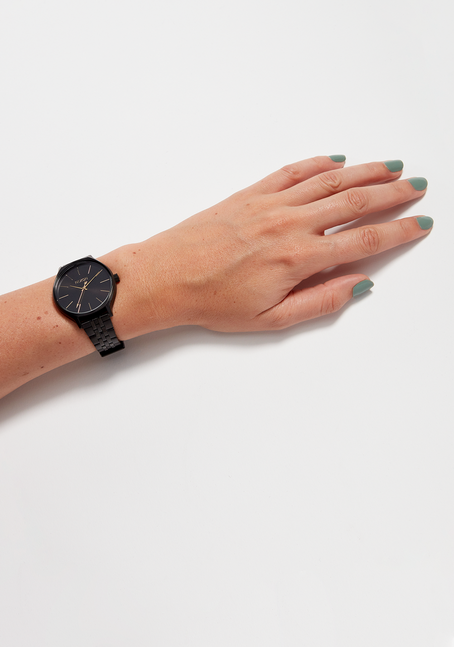 Lancette sagomate su misura, inclusa una lancetta dei secondi a forma di freccia. Indici stampati e trattamento sunray sul quadrante.