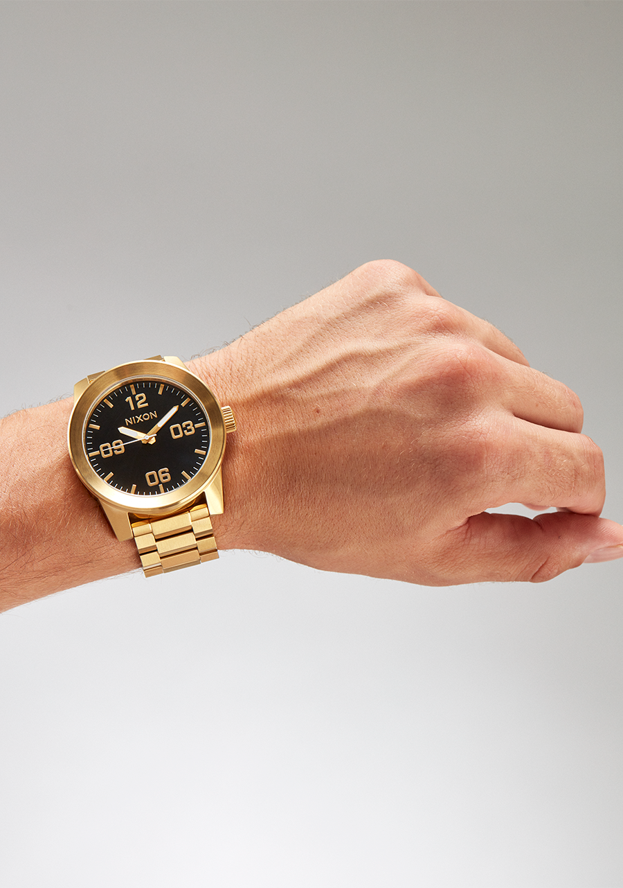 The Nixon Corporal watch uses a Miyota Japanese quartz 3-hand movement.