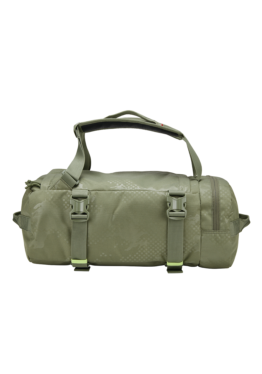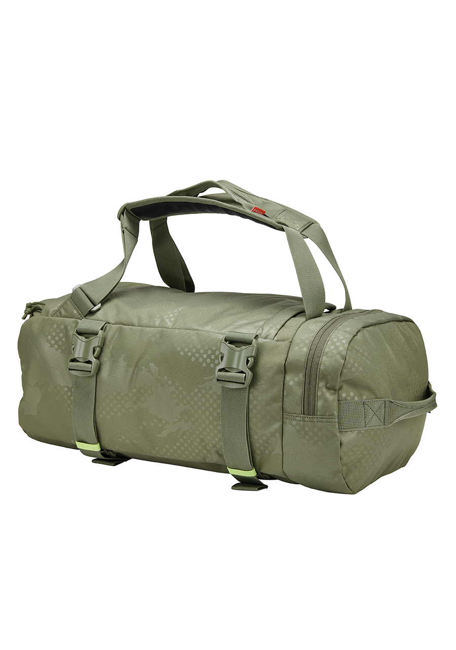 Grazie allo spallaccio staccabile e alle cinghie regolabili, si trasforma facilmente da borsone a zaino.