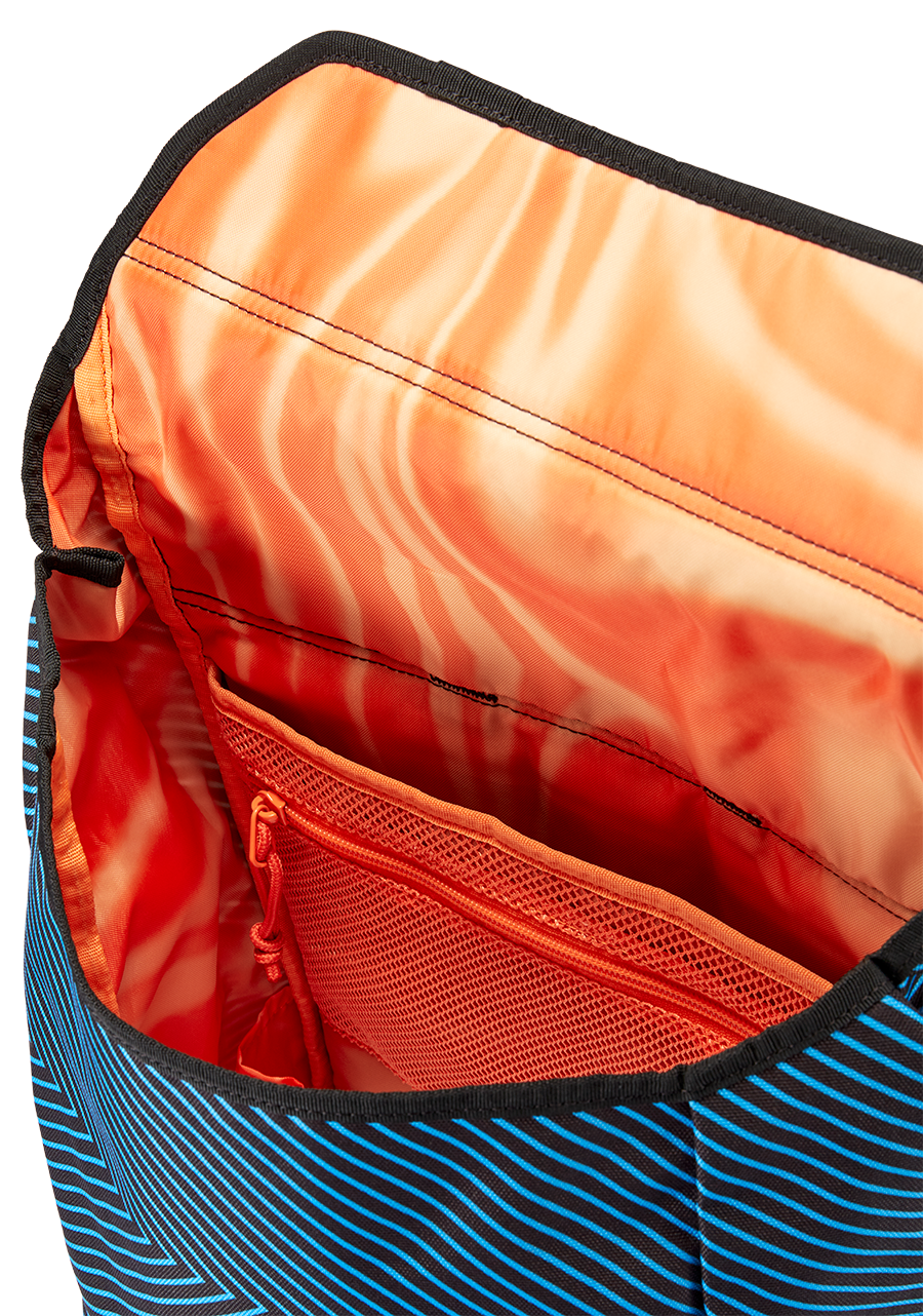 Il motivo dell’onda sonora blu è disegnato sul tessuto in PET riciclato per la massima sostenibilità dentro e fuori lo zaino Mode Grateful Dead. Una resistente base 1680D è completata da un corpo principale 600D con fodera 200D. Questo zaino è costruito per quando la strada diventa accidentata.