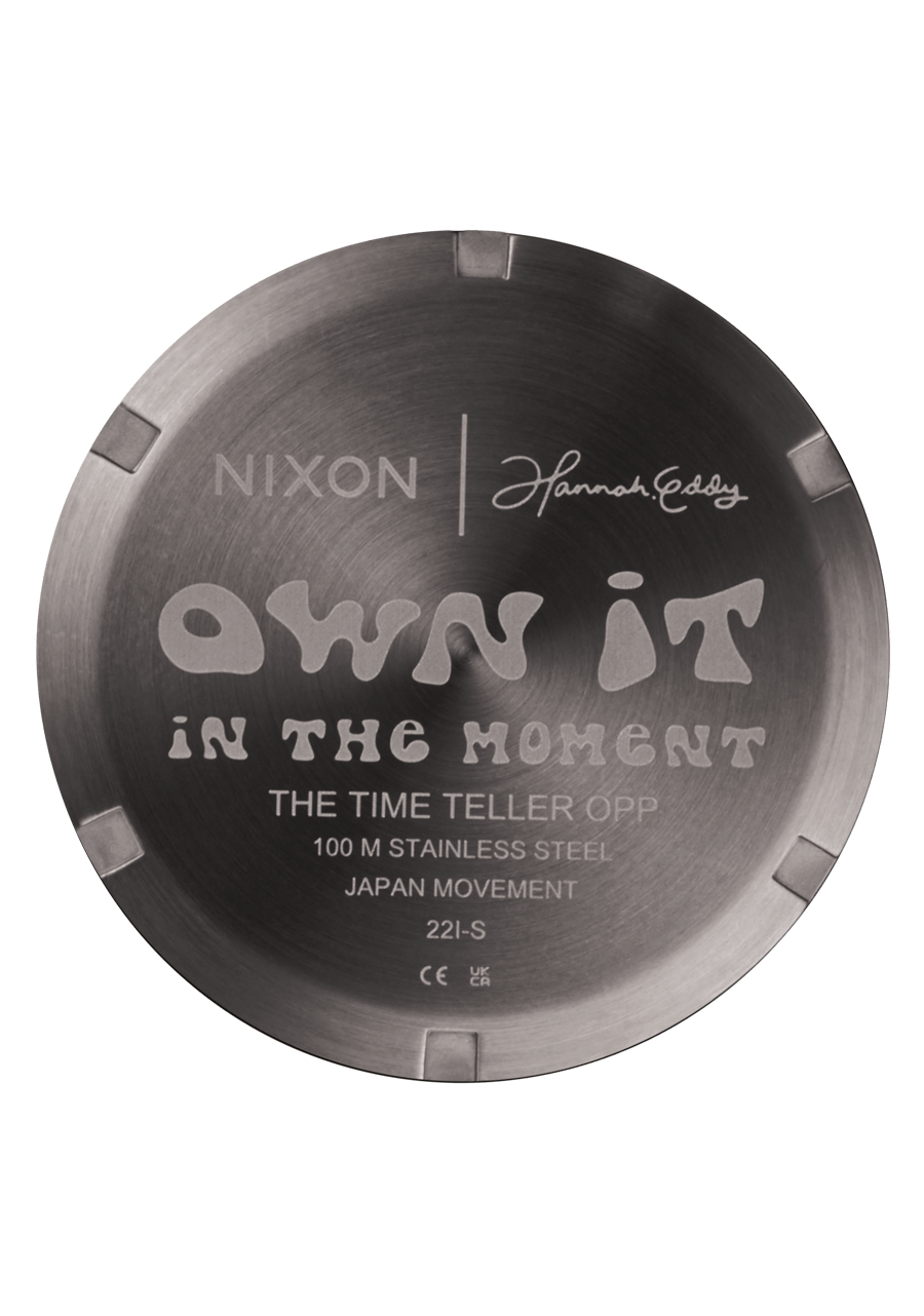Cassa dell'orologio in plastica riciclata da 39,5 mm e lunetta fissa in acciaio massiccio con resistenza all'acqua di 100 metri / 10 ATM. Include un vetro minerale indurito, corona in acciaio inox con tripla guarnizione, fondello avvitato in acciaio inox e anse con perni a molla.