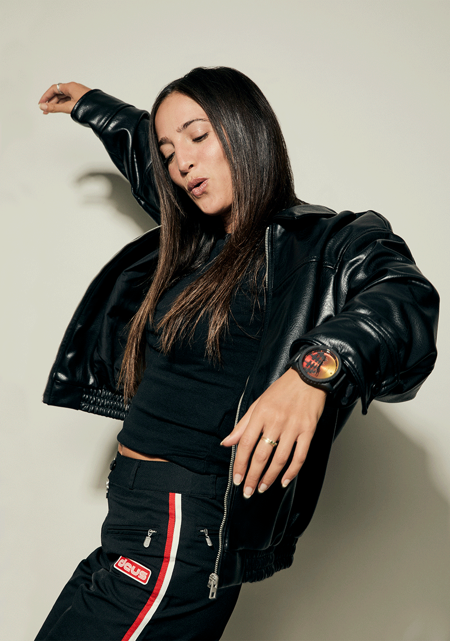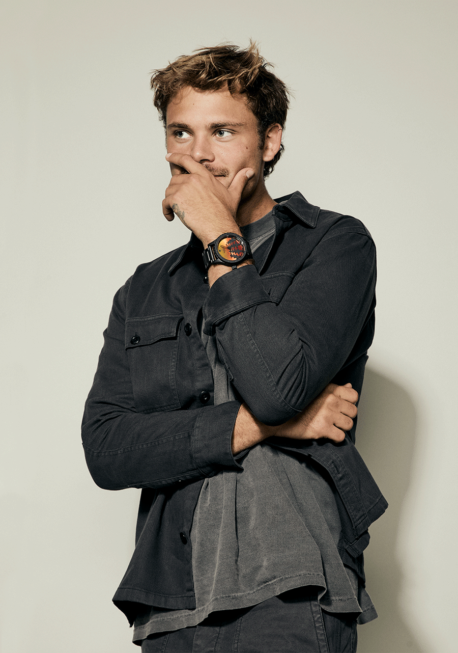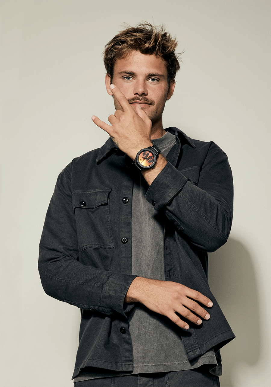 Il quadrante è circondato da una lunetta concava con grafica personalizzata dell'album e lancette sagomate su misura.