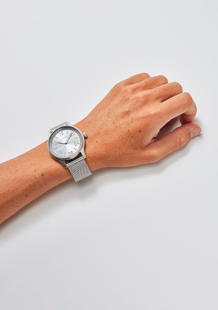 Il quadrante presenta indici arabi applicati e a bastone e una scala dei secondi stampata con lancette sagomate su misura.