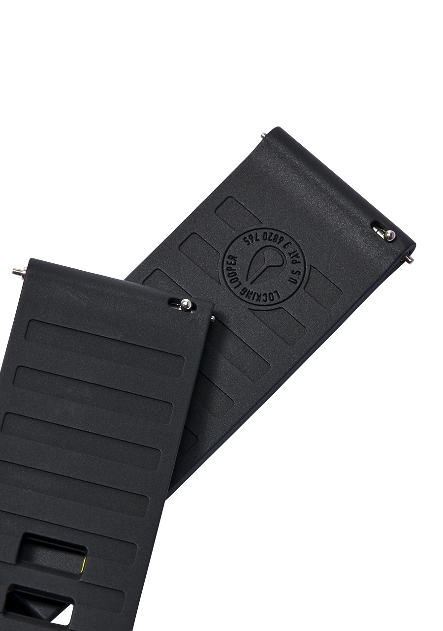 Fibbia in acciaio inox con Locking Looper™ in gomma FKM.
