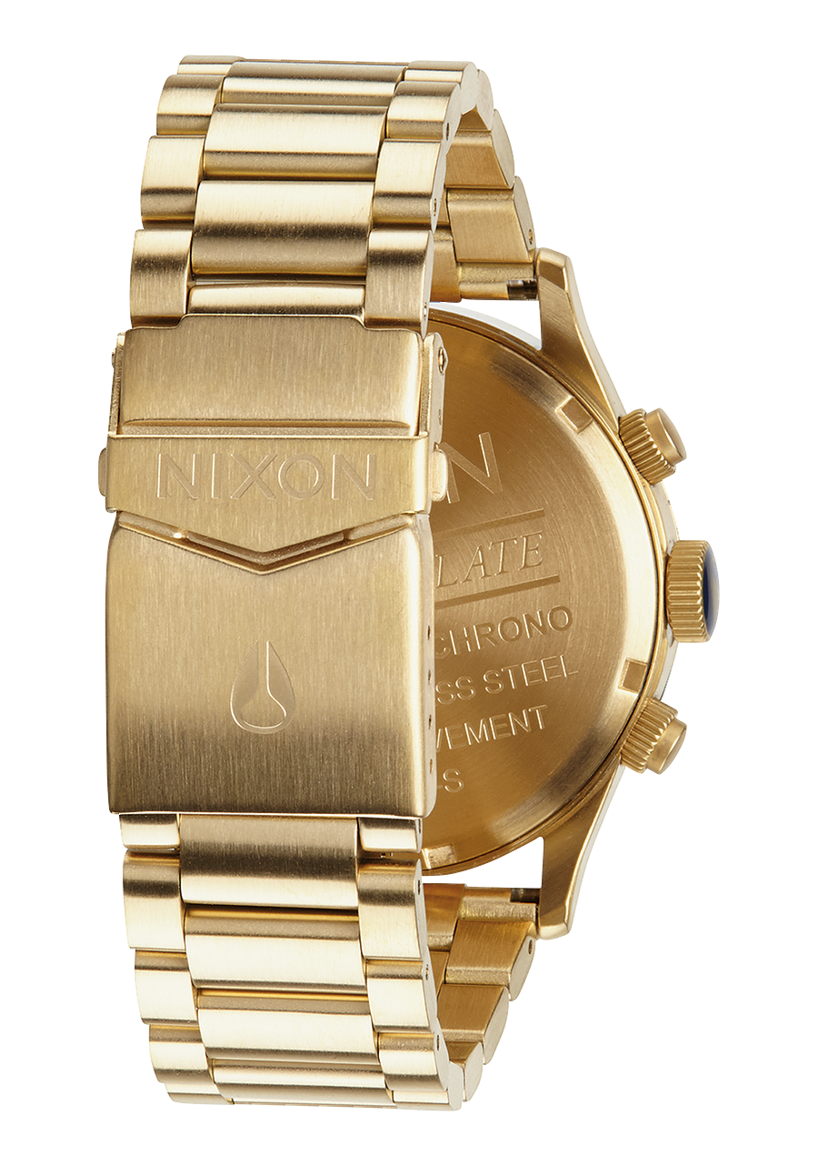 Design senza tempo con diametro di 42 mm e gli indici delle ore applicati e sfaccettati, tratto inconfondibile di Nixon
