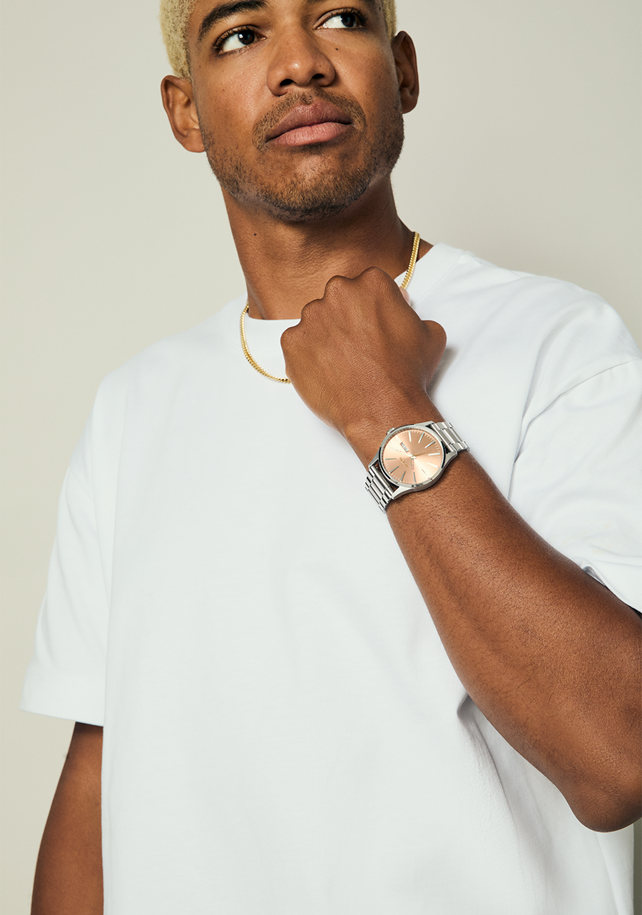 Gli indici applicati conferiscono profondità e dimensione al quadrante di questo classico orologio da tutti i giorni.