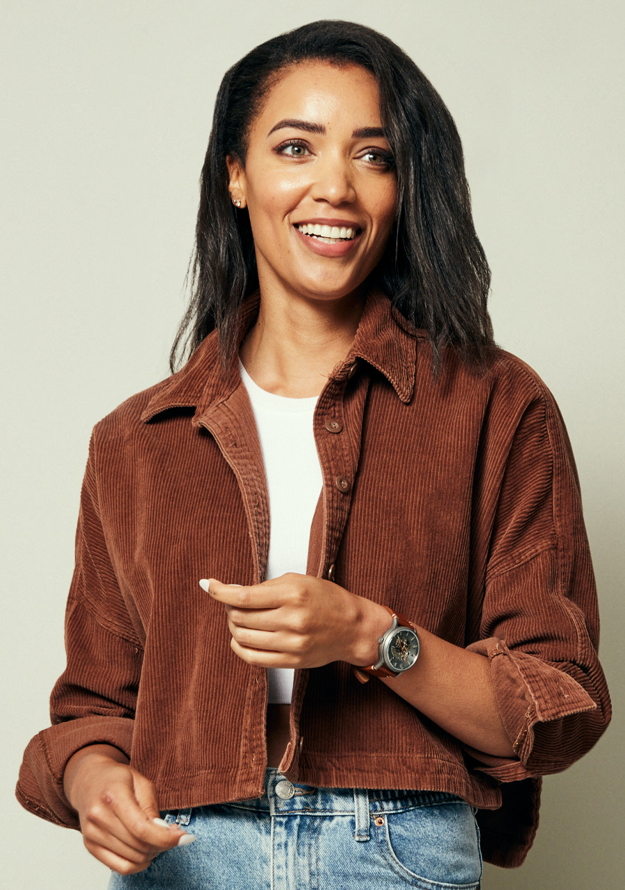 Cassa personalizzata in acciaio inossidabile massiccio da 40 mm con resistenza all'acqua di 100 metri / 10 ATM. Dotata di una corona audace con finitura a bordo zigrinato fine, vetro leggermente bombato e fondello avvitato con finestra sul movimento automatico.