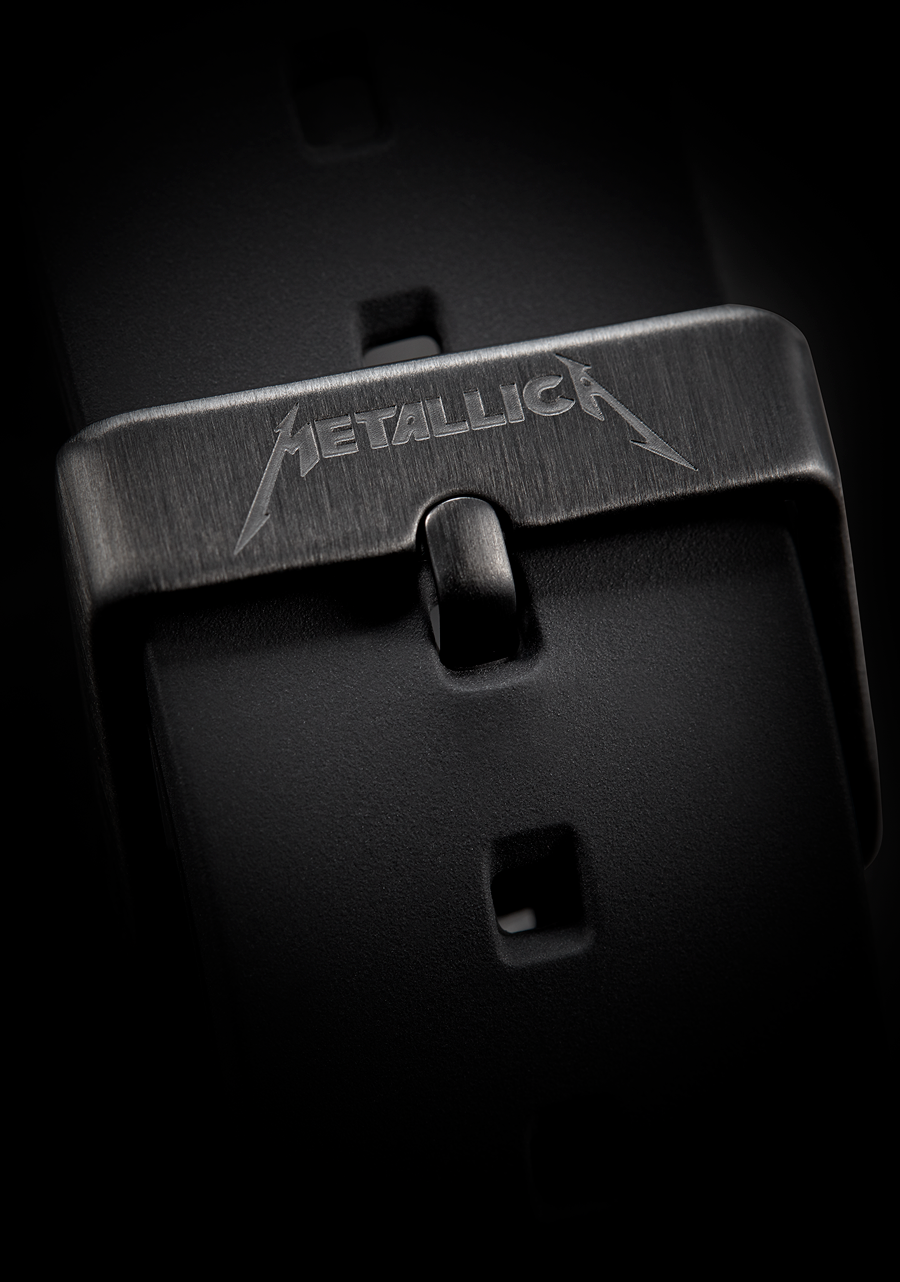 Il quadrante presenta indici a bastone in rilievo e lancette sagomate su misura.