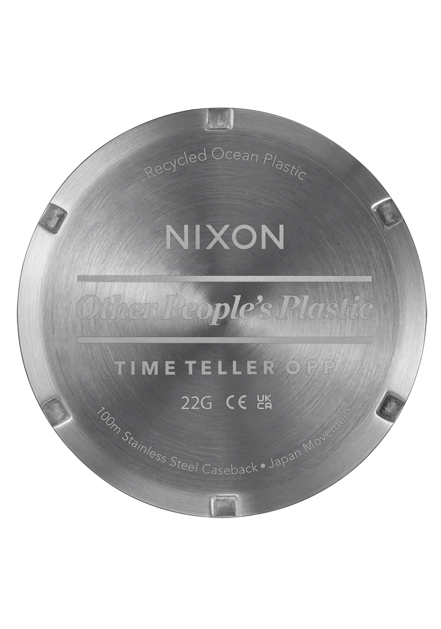 Il Time Teller OPP (realizzato con Other People's Plastic) trasforma i rifiuti del mondo in un classico. Look alternativo, sensazione di comfort e un nuovo modo di essere. È una chiara dichiarazione di sostegno al pianeta e un visibile oggetto di moda divertente al polso.