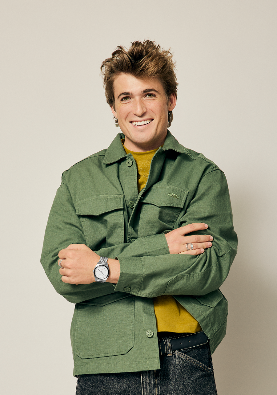 40,5mm cassa su misura e lunetta fissa in acciaio inossidabile massiccio con impermeabilità fino a 100 metri / 10 ATM. Dotato di vetro minerale temprato, corona in acciaio inossidabile con tripla guarnizione, fondello in acciaio inossidabile avvitato e anse con barrette a molla.